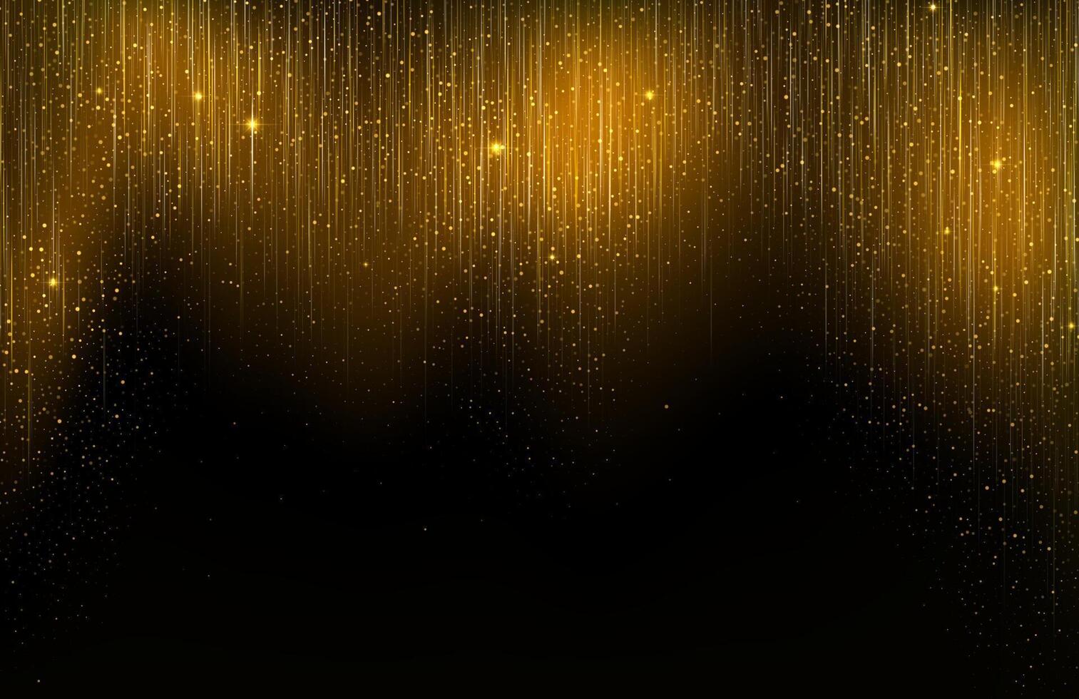 Abstract background with vertical falling golden and silver glowing lines with lights and confetti. Pro Vector