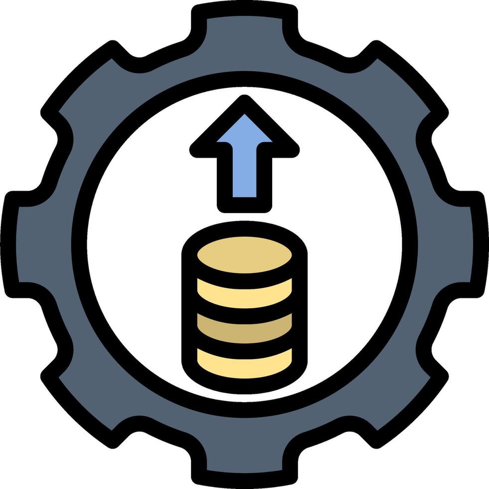 A gearwheel with a stack of coins and an arrow pointing up Free Vector
