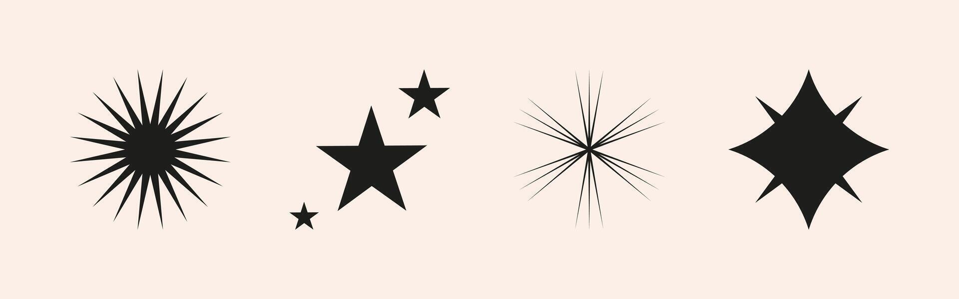 Set of shiny stars, sparkles, sun shape. Abstract explosion, glow and blink effects for festive party design. Twinkle glitter and flash graphic elements. Isolated illustrations. Pro Vector