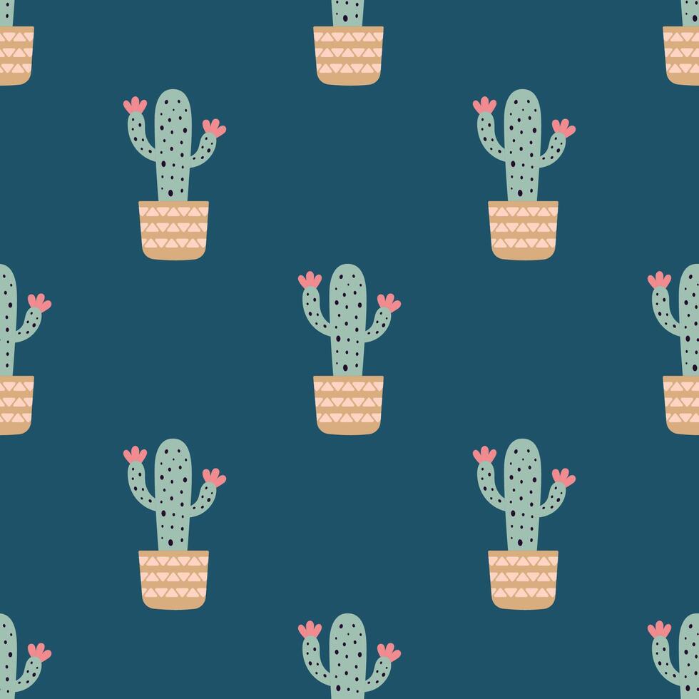 Cute cacti in boho style. Cactus seamless pattern. Trendy boho background. Cacti fabric print design. Succulent textile. Flat design, doodle style, green background Pro Vector