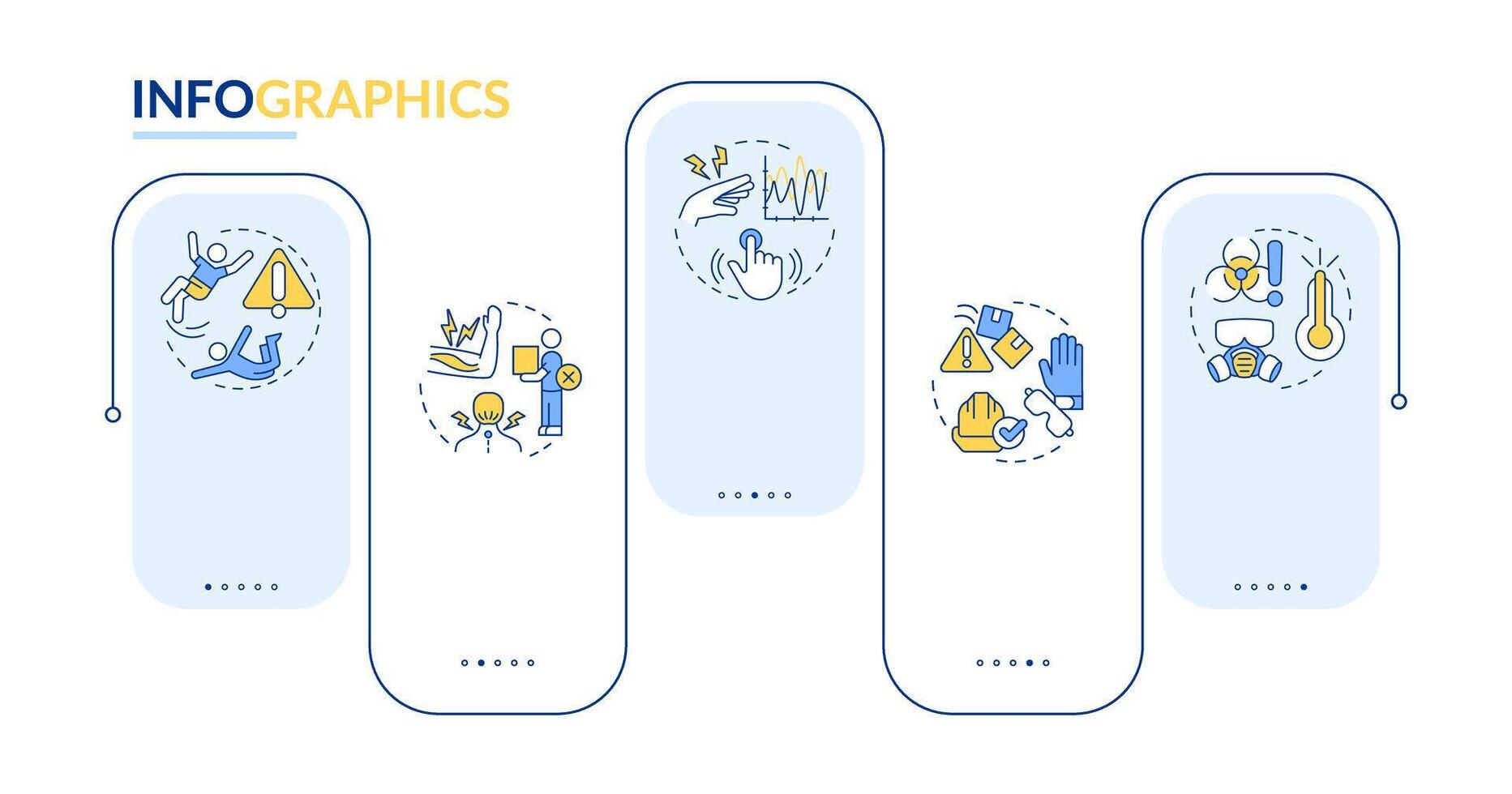 Workplace injuries common causes rectangle infographic . Work equipment, business. Data visualization with 5 steps. Editable rectangular options chart Pro Vector