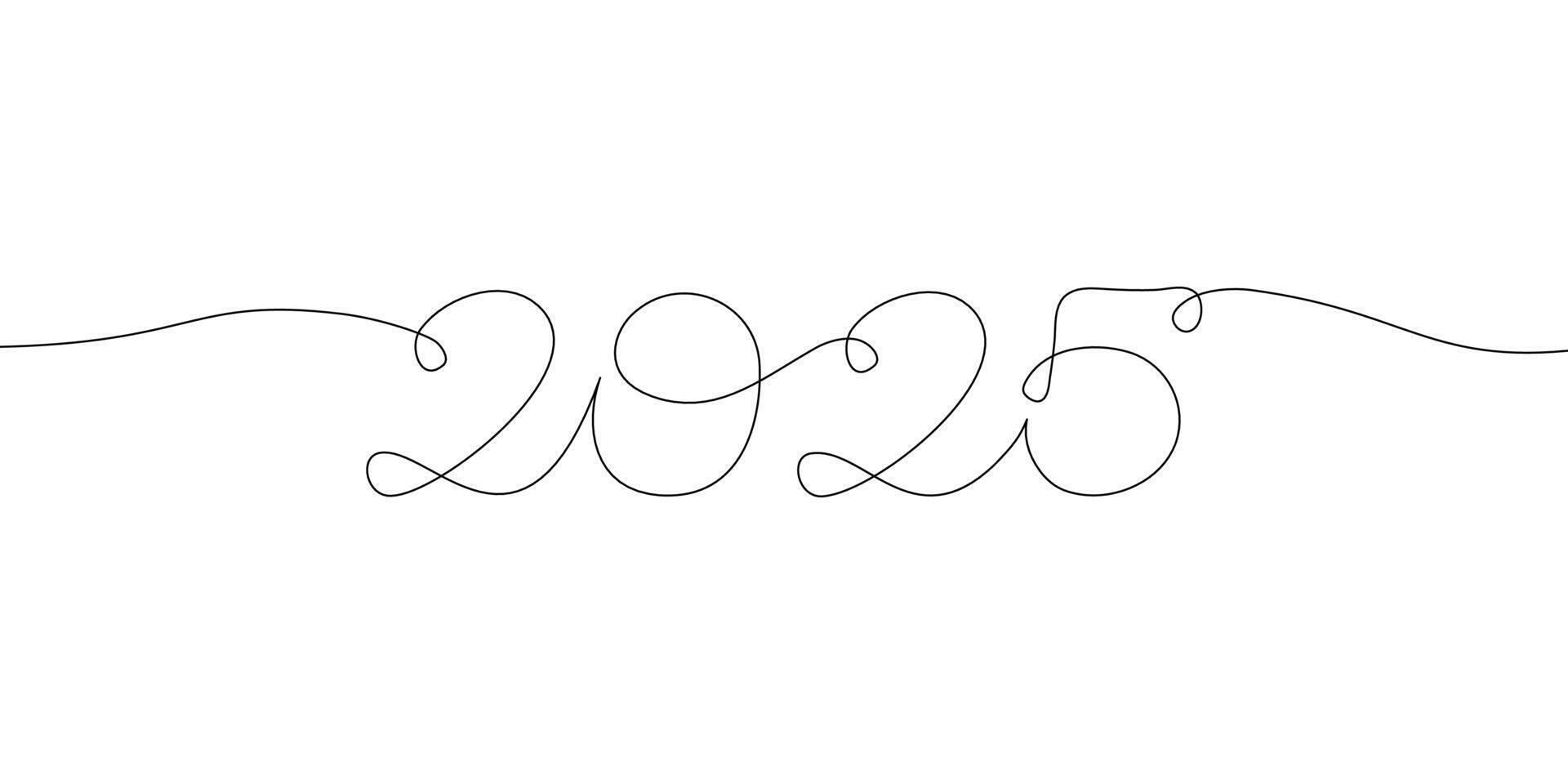 2025 one continuous line banner template. New year symbol. Minimal banner with editable stroke. illustration isolated on white background Pro Vector