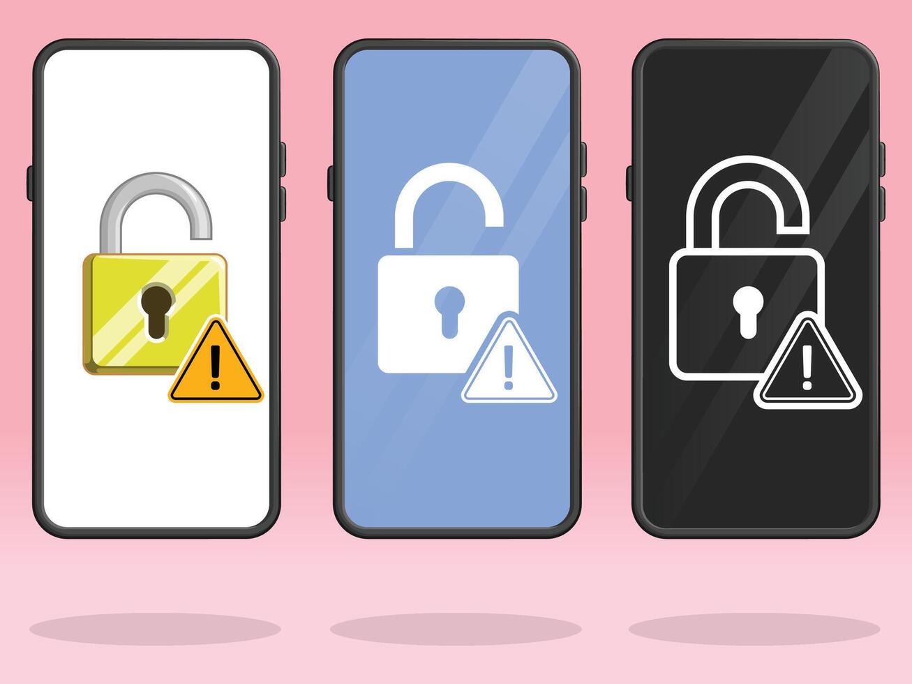 Smartphone Lock Open Triangle Security Warning Pro Vector
