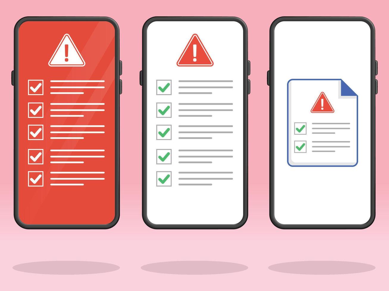 Smartphone Checklist Triangle Red Warning File Pro Vector