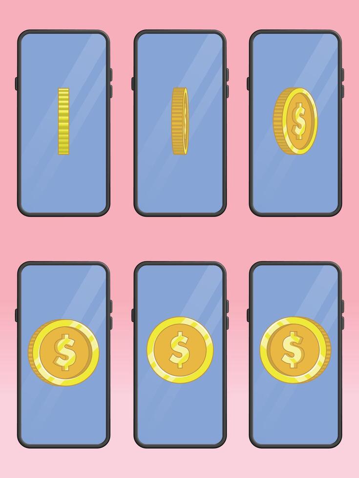 Smartphone Coin Showing Side Front View Positions Pro Vector
