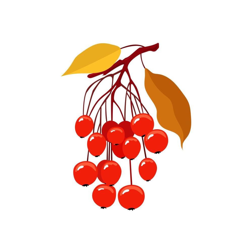 autumn branch of viburnum on white background. Element of botanic, nature, plant and trees. Beautiful element for autumn design projects vector