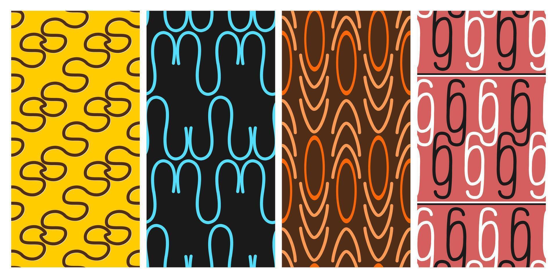 a collection of seamless patterns with an abstract theme that has a unique and interesting character. suitable for application to fabric, paper, or displayed digitally vector