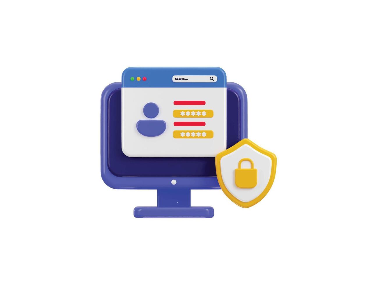 Secure login page with password form on computer and padlock with protect shield icon 3d render Pro Vector
