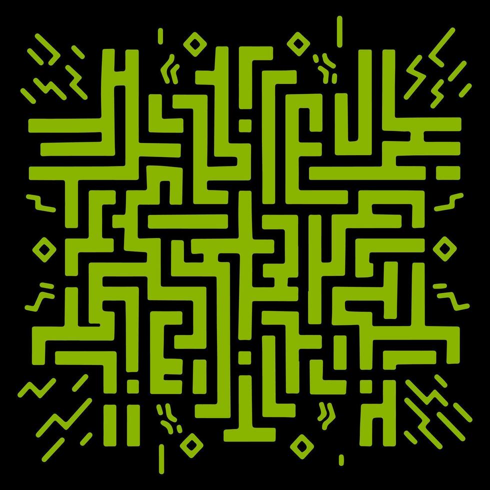 Intricate abstract pattern created with green lines against a black background Pro Vector