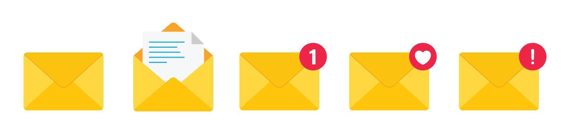 Incoming message icon. Notification, message or email icon set isolated on white background. Envelope message icon collection. Incoming message notification illustration. Pro Vector