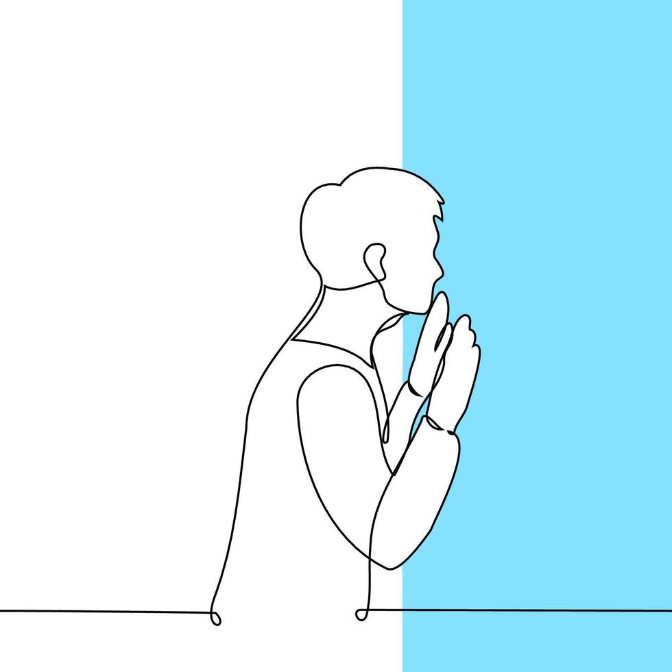 man standing in front of a wall looking through with both palms up - one line art . metaphor obstacles, inaccessible place, impossible dreams,, feeling of isolation, frustration vector