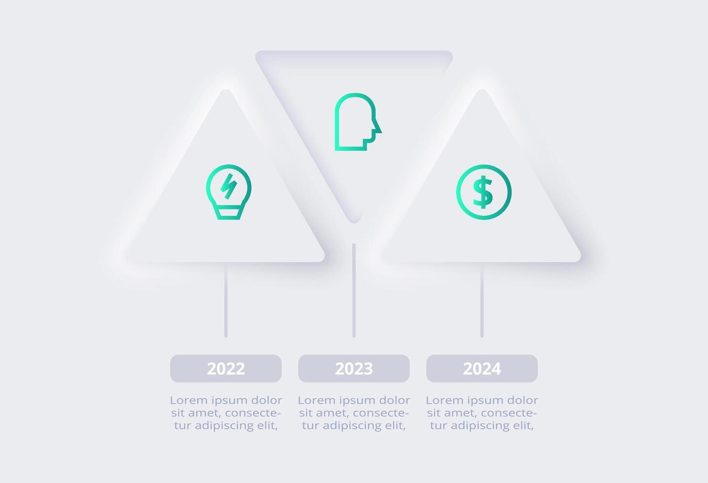 Neumorphic flow chart infographic. Creative concept for infographic with 3 steps, options, parts or processes. Pro Vector