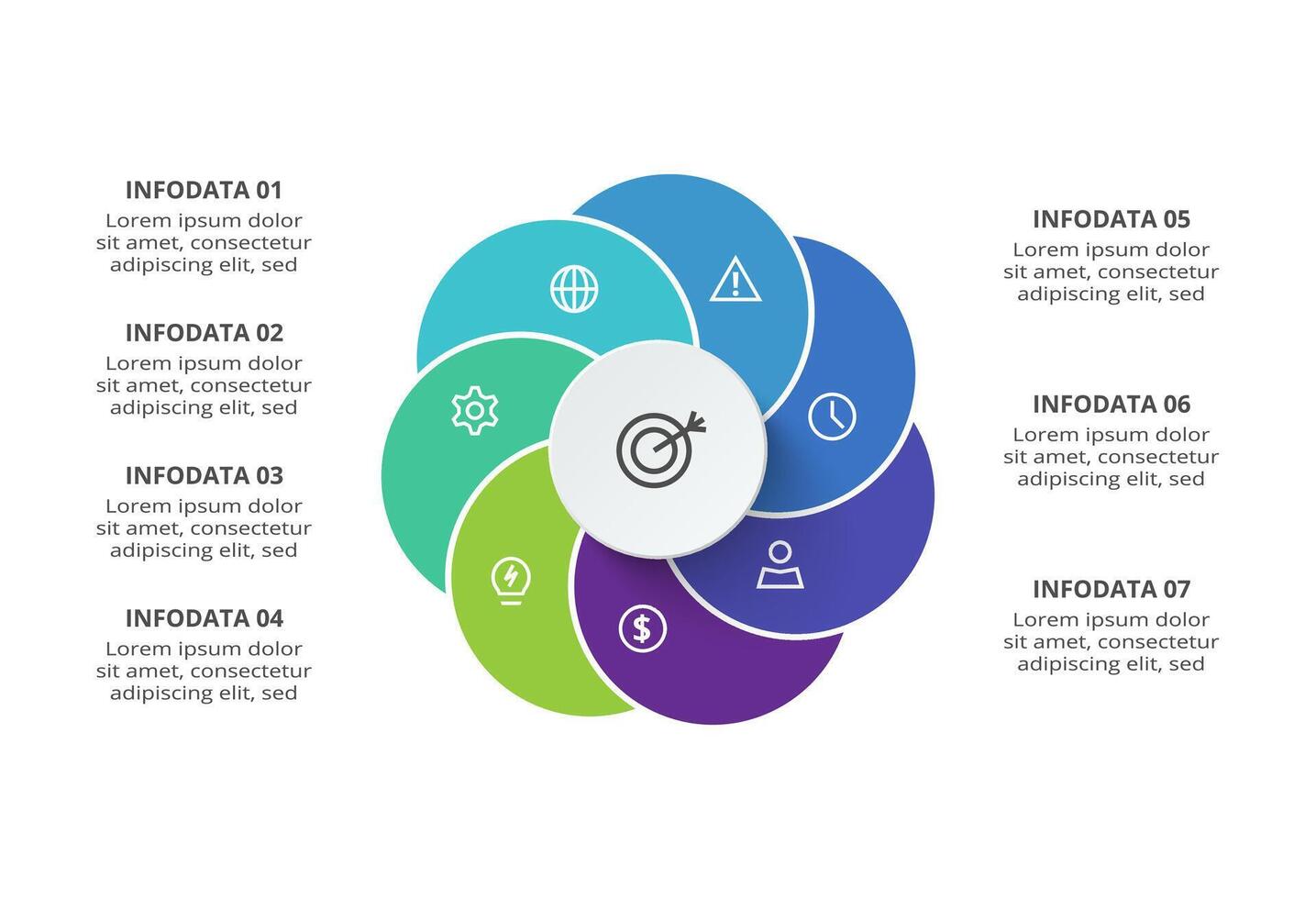 Creative concept for infographic with 7 steps, options, parts or processes. Business data visualization. Pro Vector