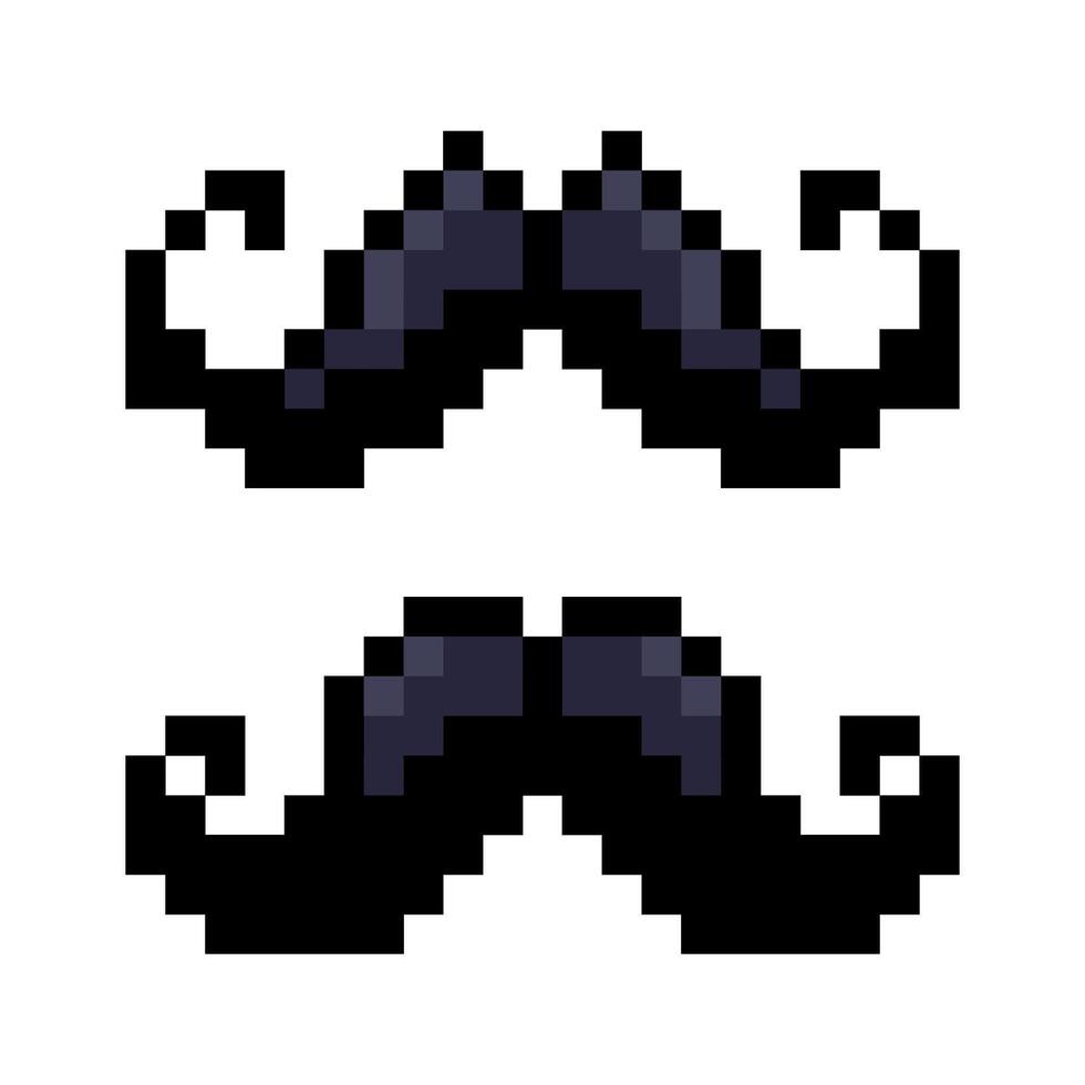 Set of pixelated moustache icons. Gentlemen moustache. Arcade game, 8-bit. Pixel art on a white background. Pro Vector