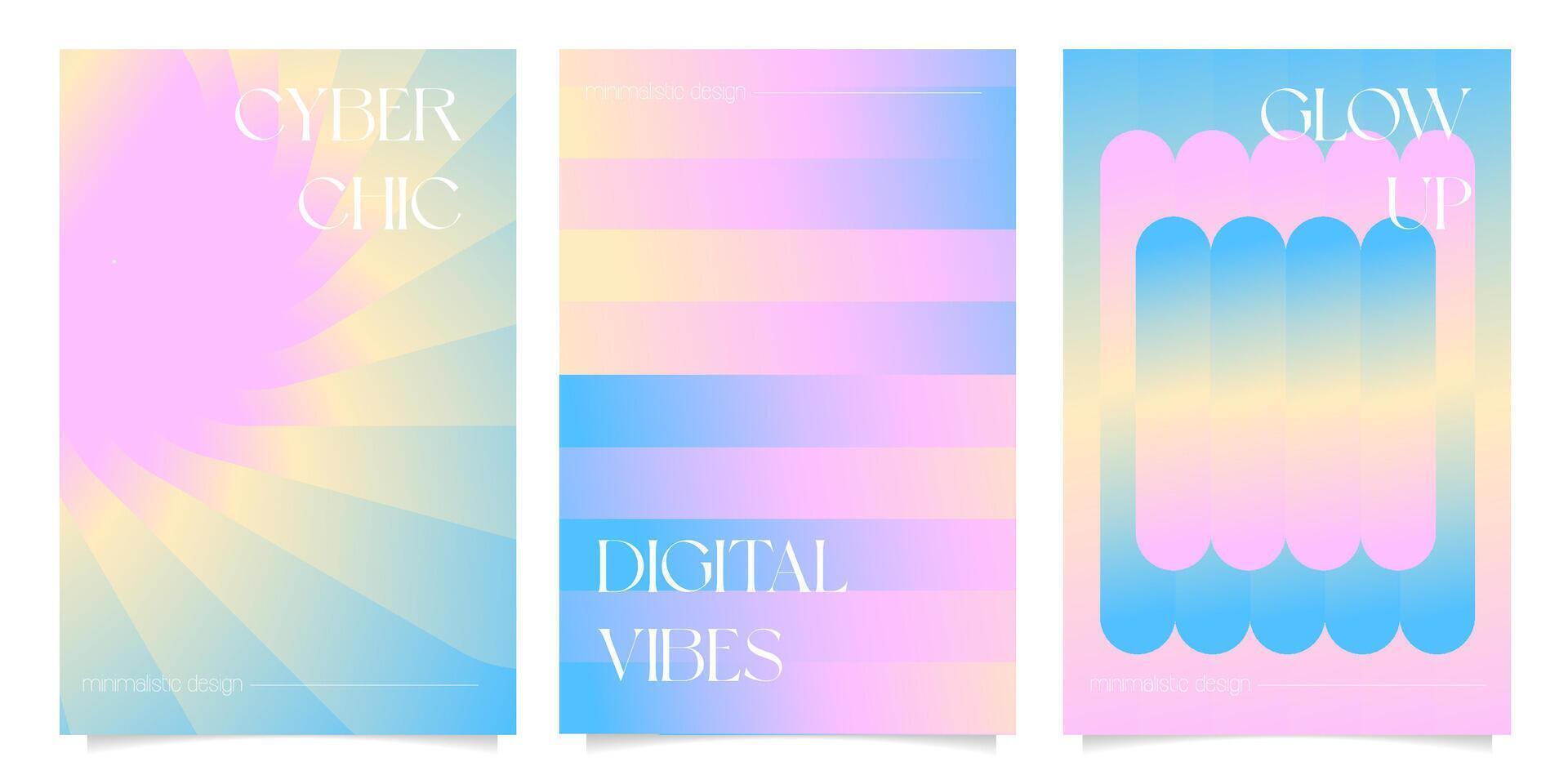 Abstract posters set. Gradient circles, Curve lines, stripes. Geometric Linear minimalist shapes. Bauhaus graphic design. Round figures. Simple modern art. garish banner templates collection Pro Vector