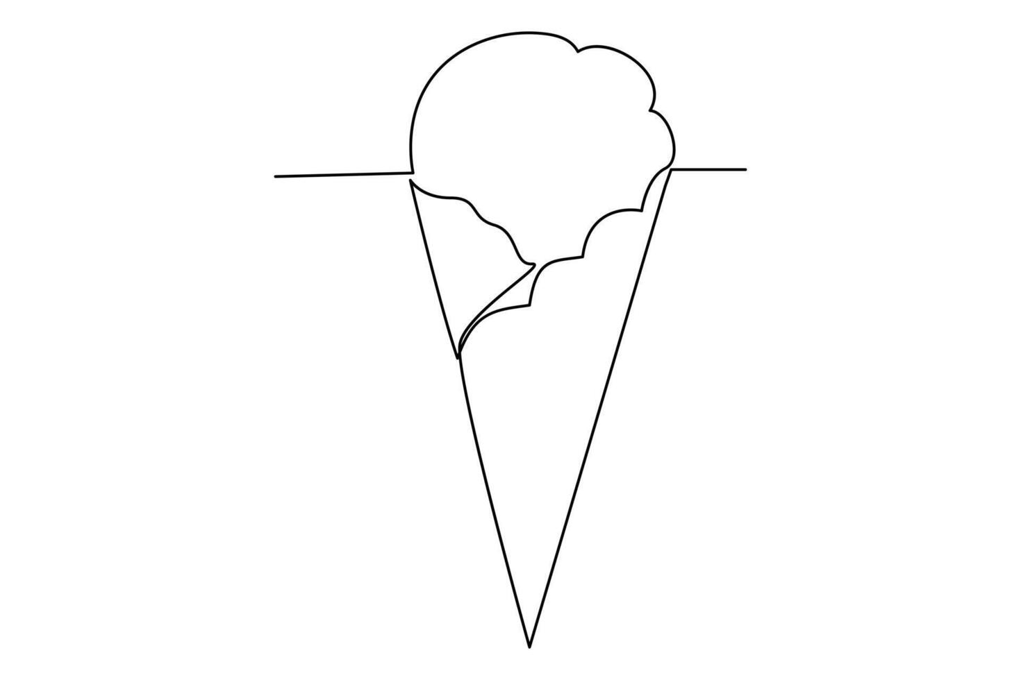 Continuous line drawing of Ice cream in waffle cone isolated on white background Pro Vector