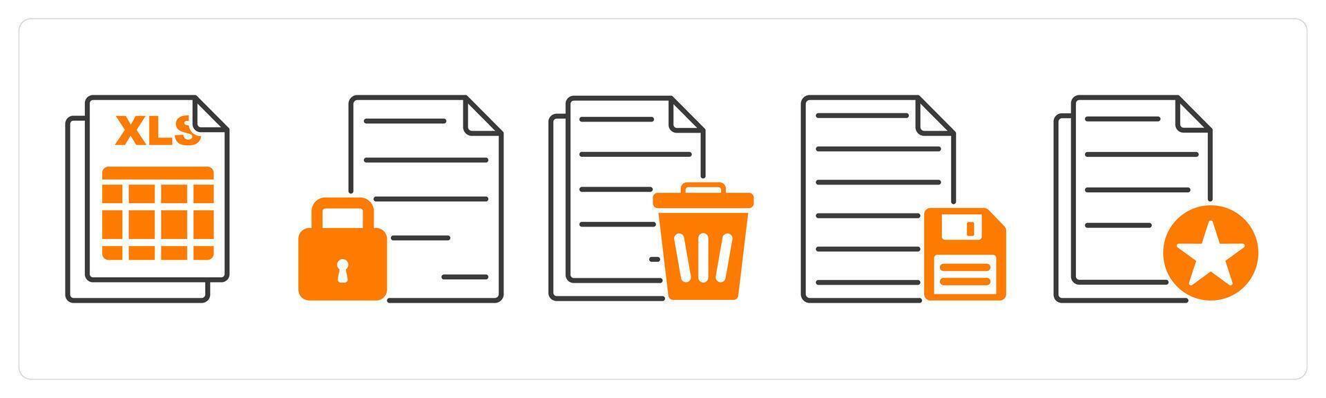 A set of 5 Files icons as excel file, lock file, trash file Pro Vector