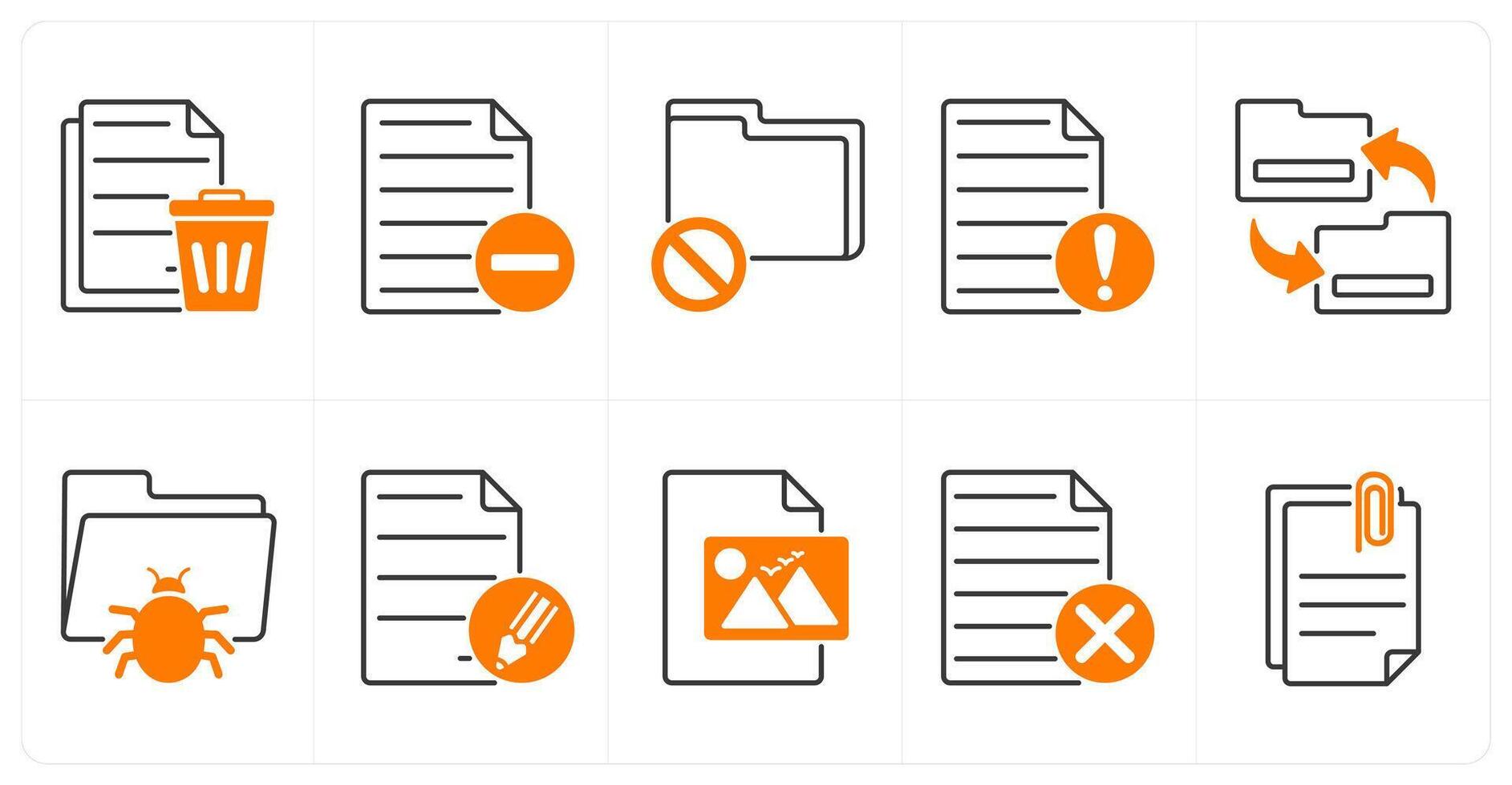 A set of 10 files icons as trash file, remove file, folder error Pro Vector