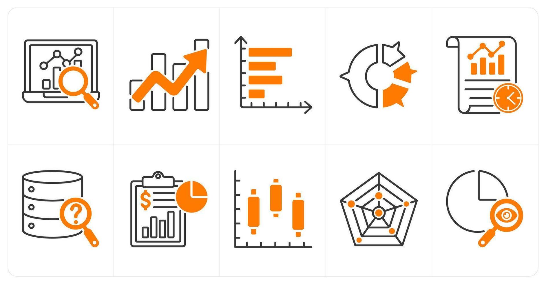 A set of 10 diagram icons as data analysis, growth statistics, horizontal chart Pro Vector