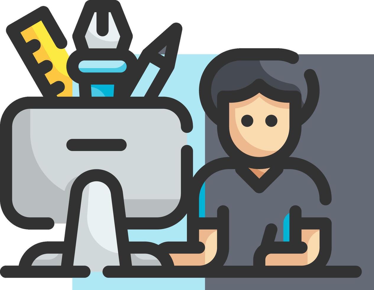 A man is sitting at a computer with a computer mouse and other tools Free Vector