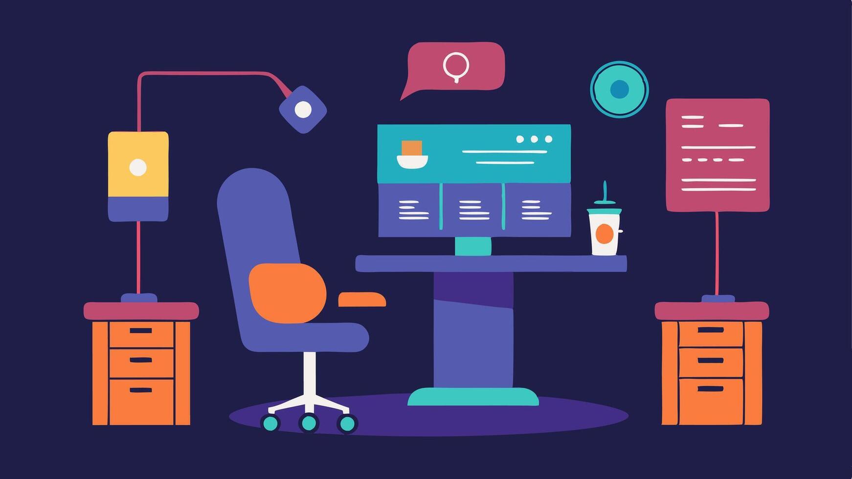 Inclusive Editing Suite An editing room featuring an ergonomically designed chair a voiceactivated editing software interface and large comfortable spaces for group discussions.. Pro Vector