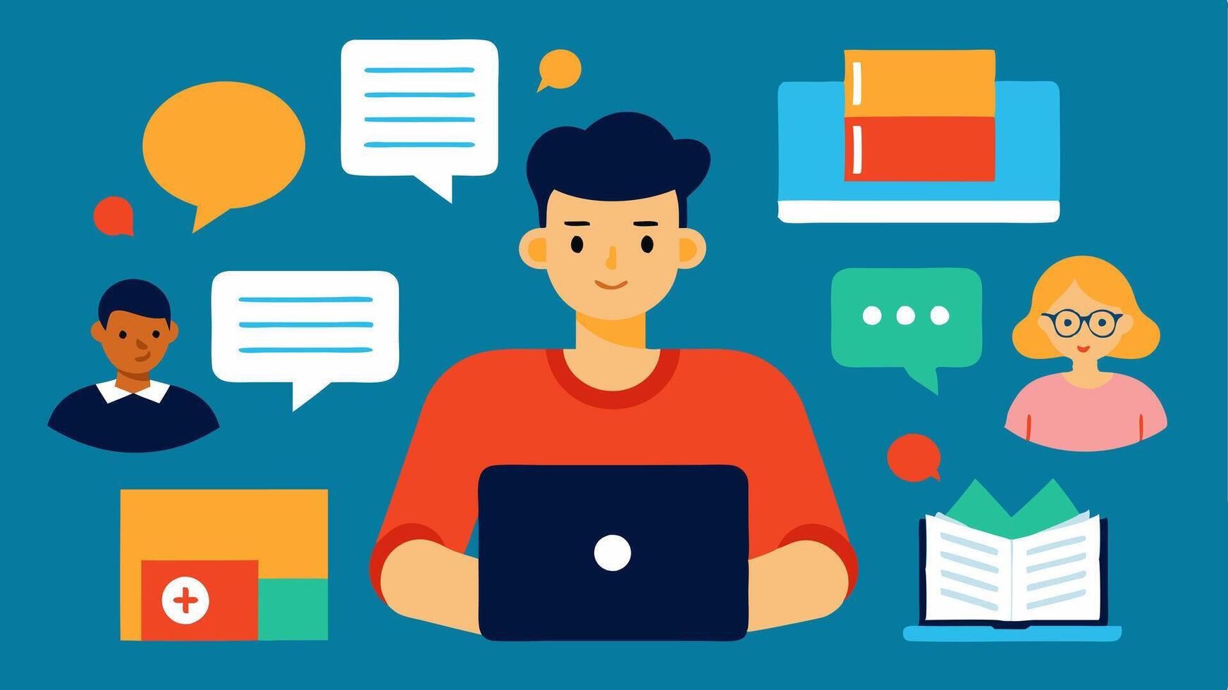 Technology for All A student using adaptive technology like a speechtotext app on their laptop while peers gather around sharing ideas and notes.. Pro Vector