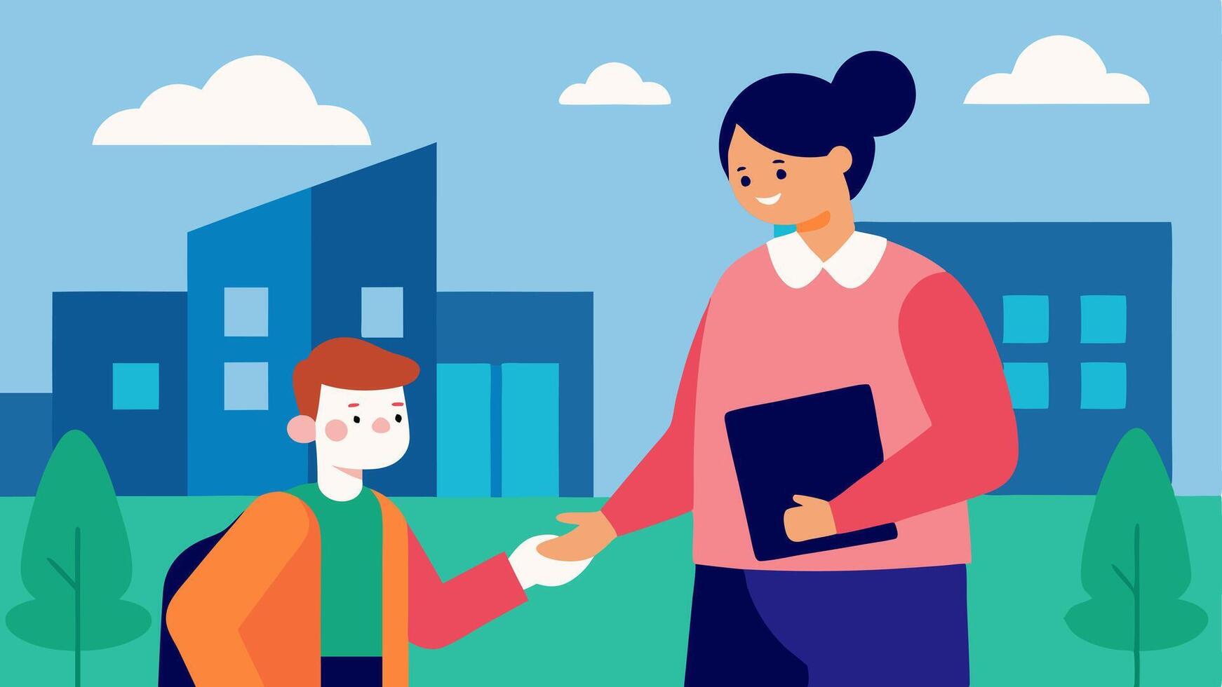 Peer Mentoring Program An illustration of a senior student guiding a firstyear student on campus representing mentorship programs that help students with disabilities.. Pro Vector