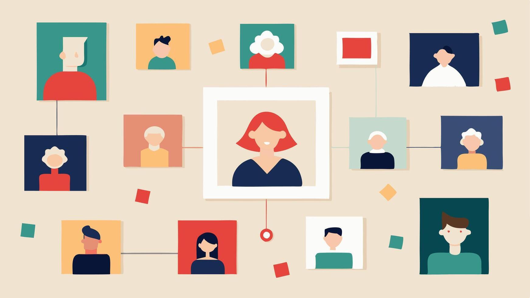 Visual Memory Aids A wall filled with photo collages of past events family photos and simple labels providing residents with a sense of nostalgia and connection.. Pro Vector