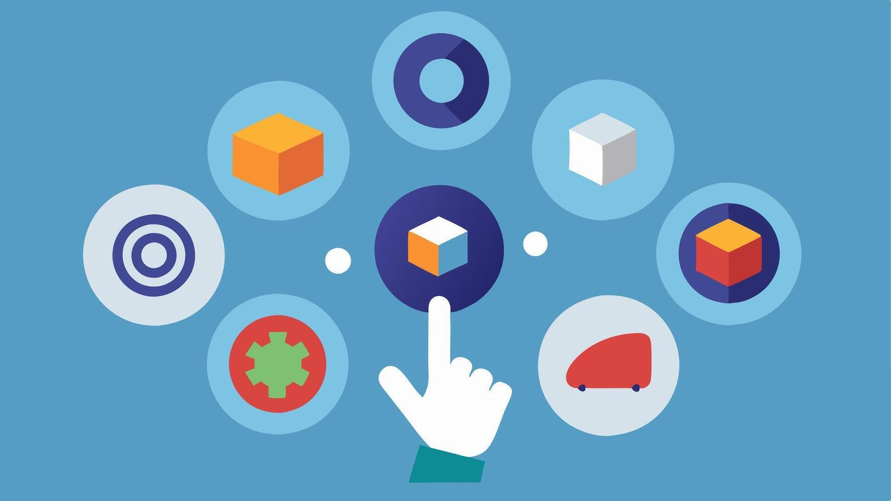 Sensory Fidget Options An assortment of fidget toy icons arranged in a circular layout including spinners cubes and beads. A users finger is shown selecting one representing. Pro Vector