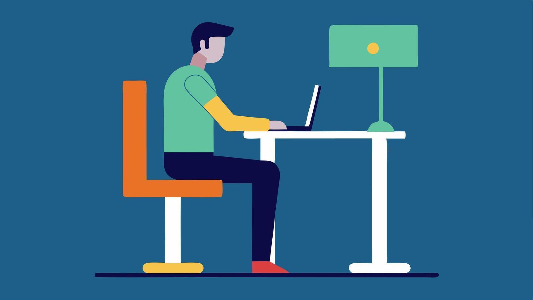 Standing Desk Setup An illustration of a person at a heightadjustable desk wearing a posture monitor with visual indicators showing the ergonomic setup for optimal posture.. Pro Vector