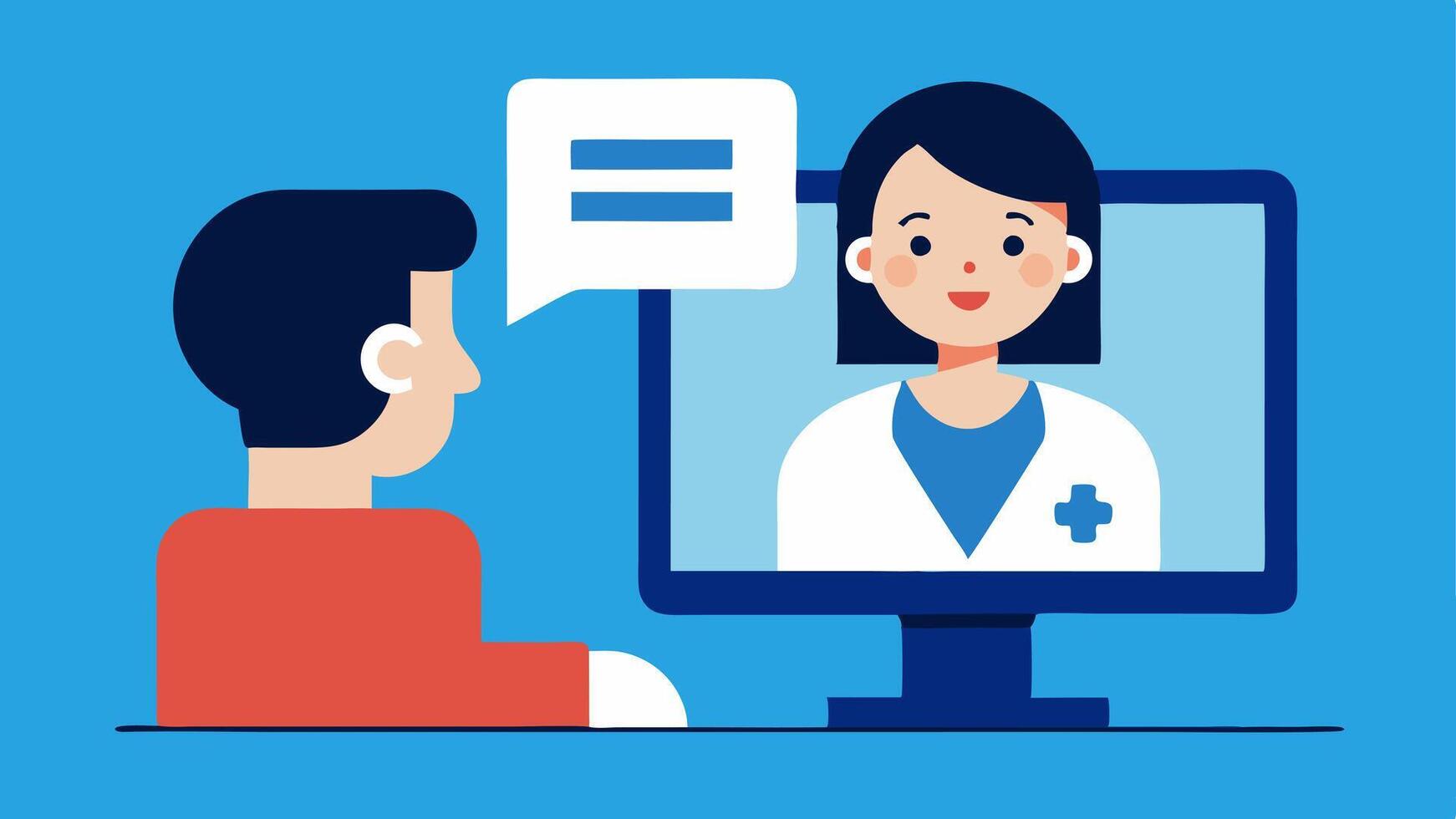 Telehealth Consultation An image showing a patient discussing health concerns with a virtual doctor or nurse on a computer screen emphasizing remote healthcare advice.. Pro Vector
