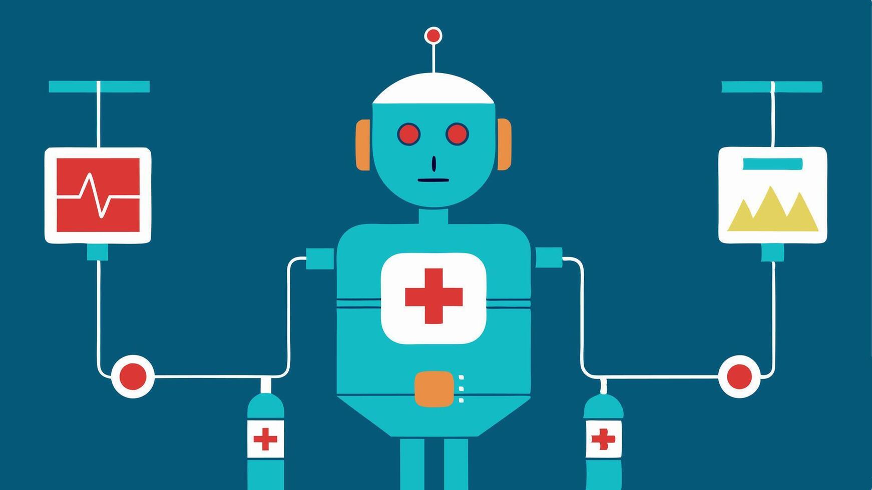 PostSurgery Recovery A robotic system attending to a patient post with automated systems ensuring proper recovery while monitoring vital signs continuously.. Pro Vector