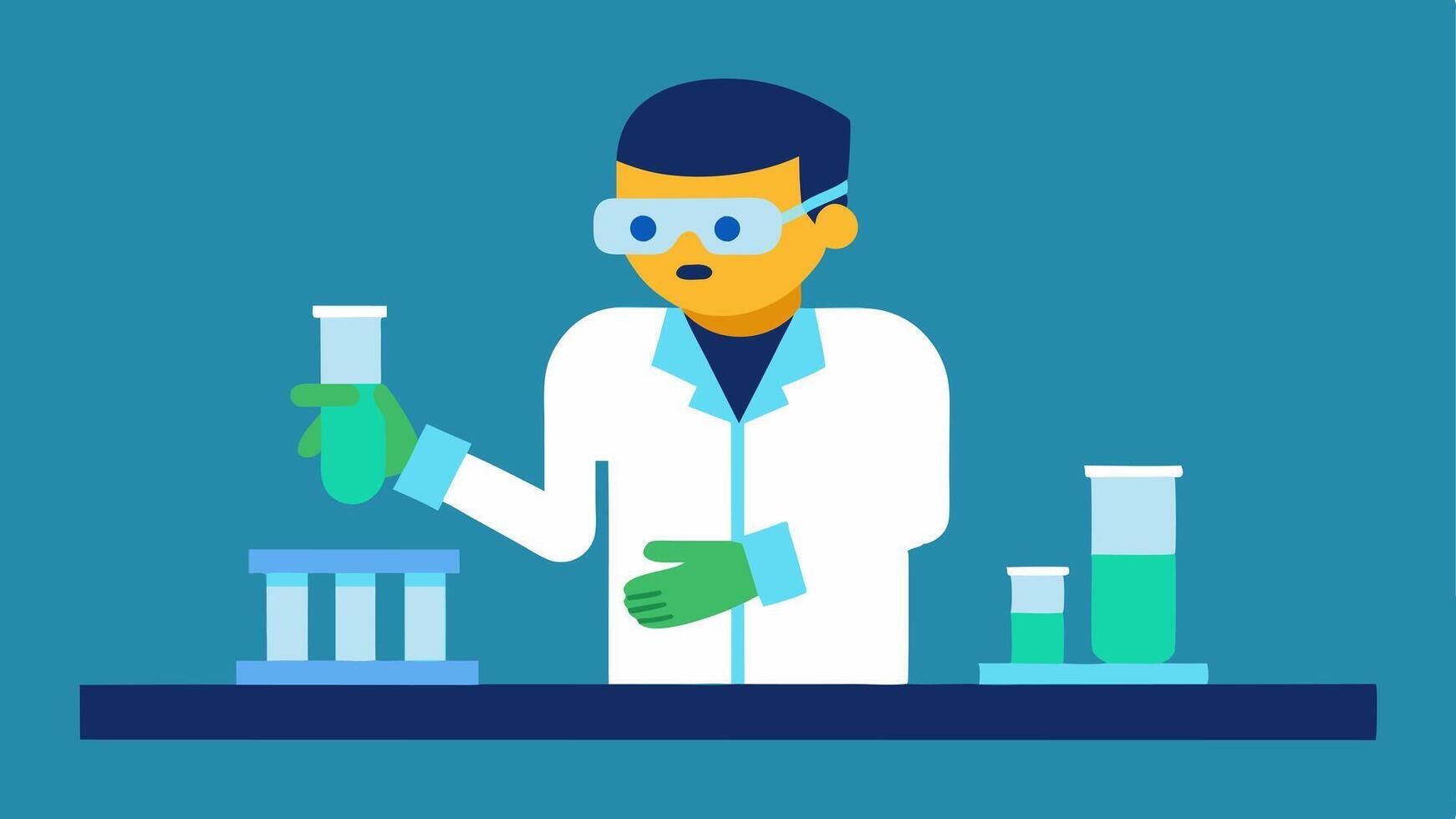 Research Scientist An illustration of a scientist wearing lab gloves and goggles analyzing samples at a lab bench showcasing the role of human expertise in diagnostics.. Pro Vector