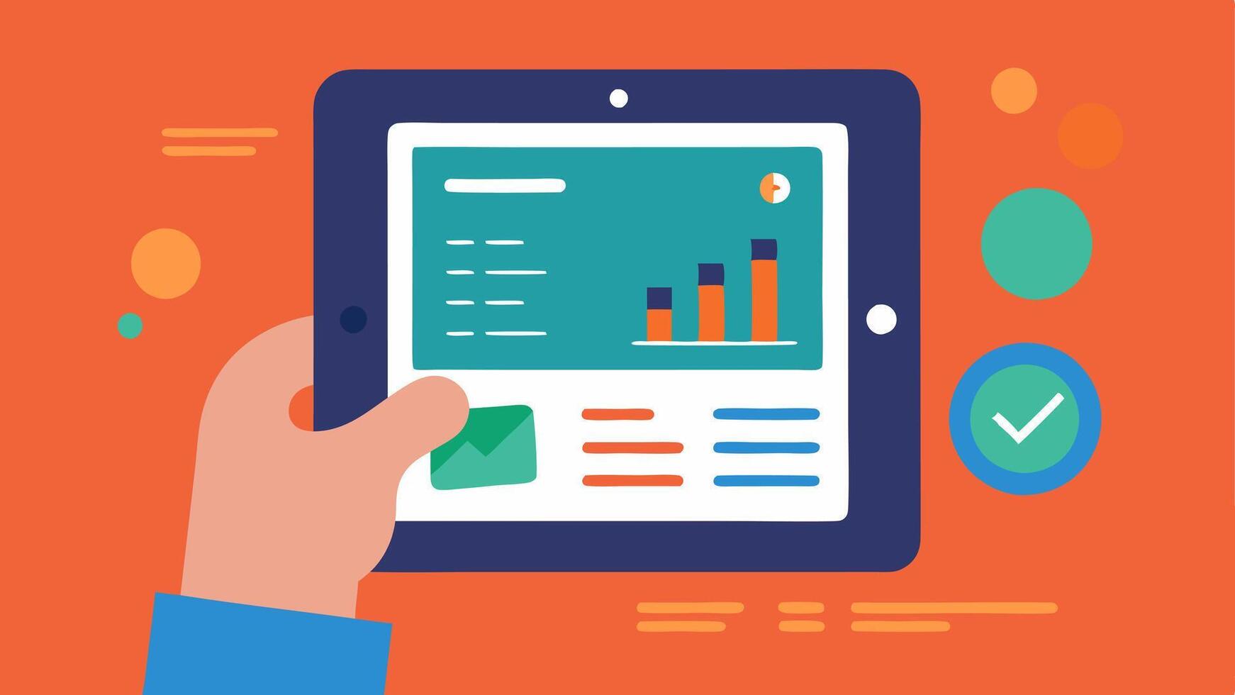 User Interface A hand holding the device while displaying a digital screen panel with test results graphs and alerts.. Pro Vector