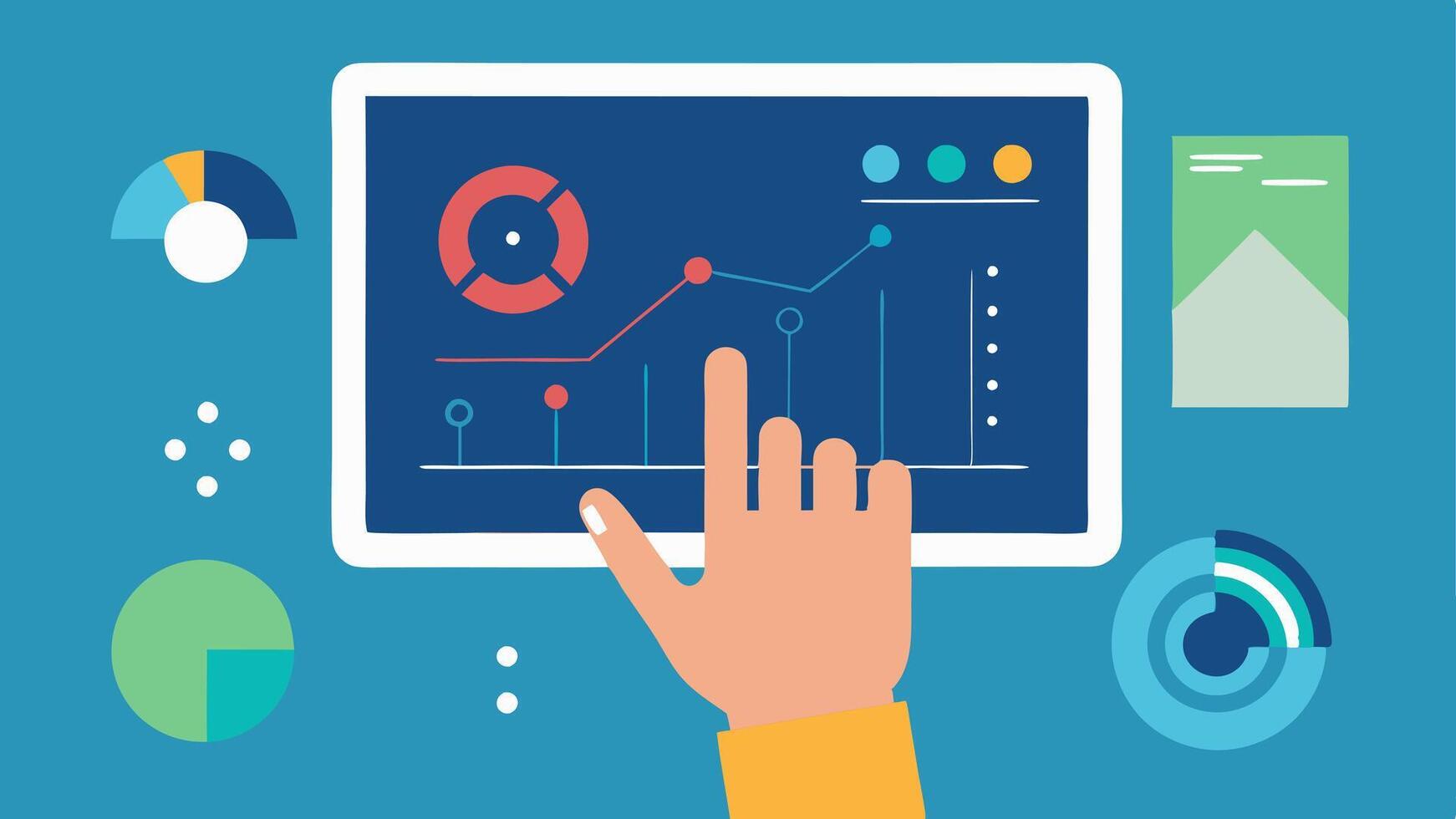 UserFriendly Interface An illustration of a hand interacting with a touchscreen device navigating through pressure charts and past readings.. Pro Vector