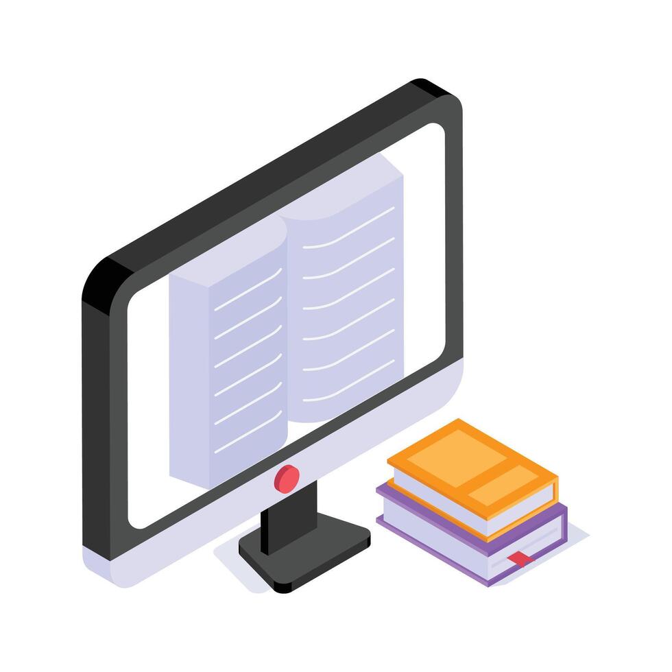 A computer screen displaying an open digital book, e learning concept Pro Vector