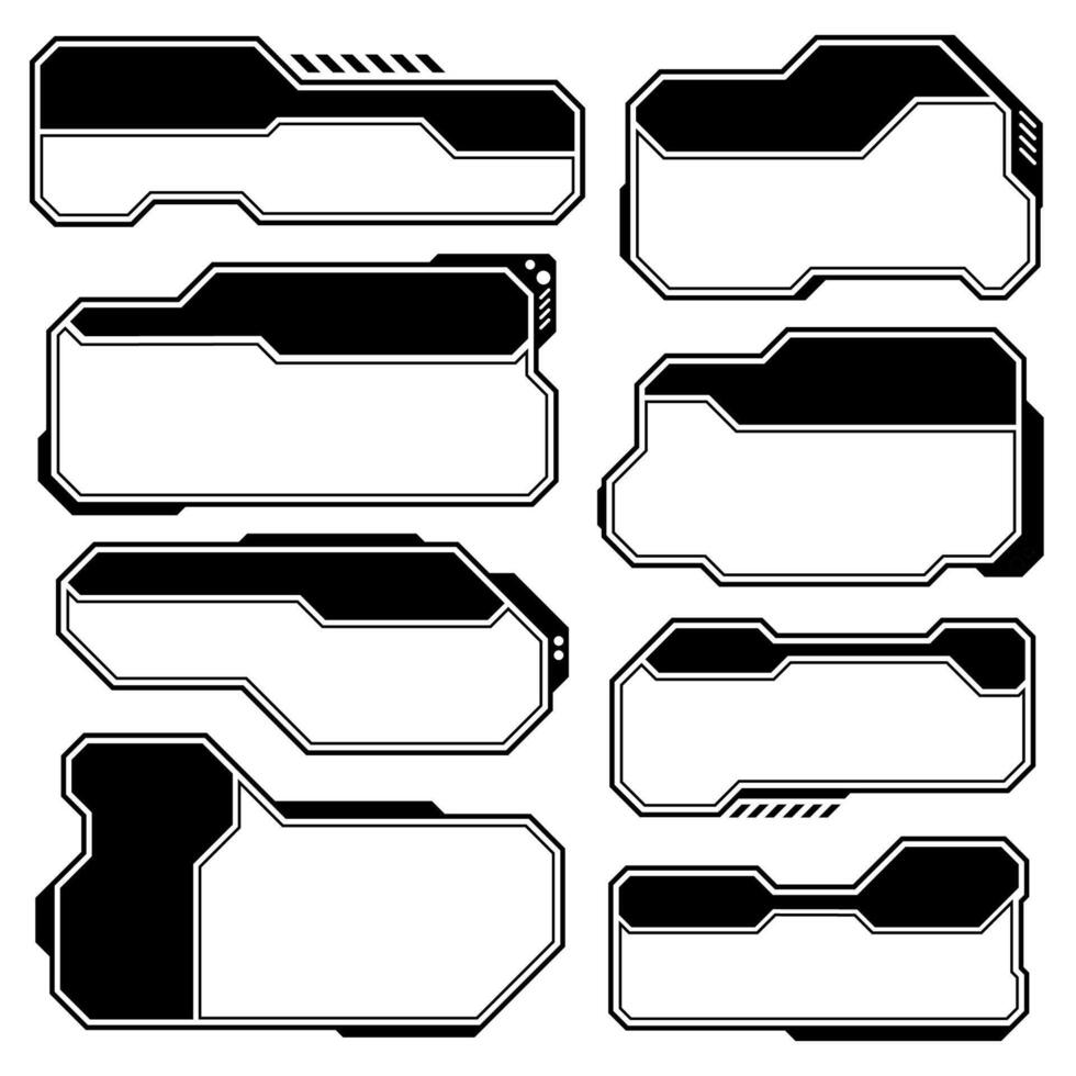 Futuristic set hi tech frame cyberpunk style design element. Technology HUD sci-fi square shape design. Pro Vector