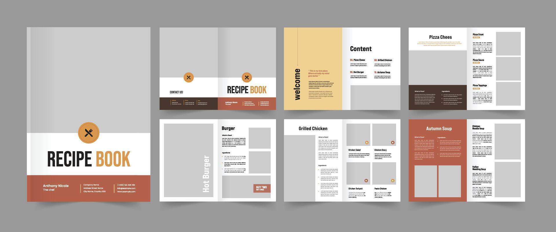 Recipe book template, cookbook, food menu design, cookbook magazine layout Pro Vector