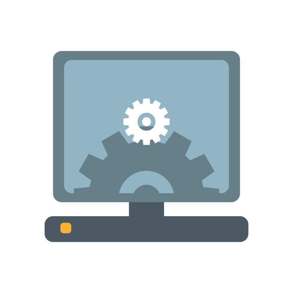 Computer monitor with gears, symbolizing settings and configuration. Ideal for tech, software, and IT themes. Pro Vector