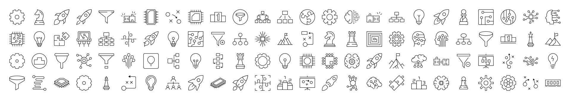 Minimalistic Linear Illustrations of Data and Analytics. Contains Icons of Puzzle, Funnel, Gear, Cogwheel, Spaceship that Can Be Used for Design of Cards, Posts, Apps, Web Sites Pro Vector