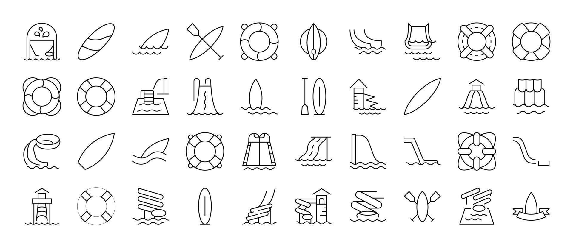 Lifeline and Water Slide Outline Simple Linear Image Collection. Editable Stroke. Suitable for Web Sites, Books, Cards, Apps Pro Vector