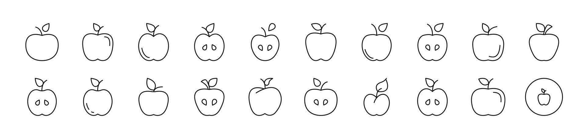 Apple Icon Set for UI, Placards, Books, Apps. Editable Stroke. Suitable for Web Sites, Books, Cards, Apps Pro Vector