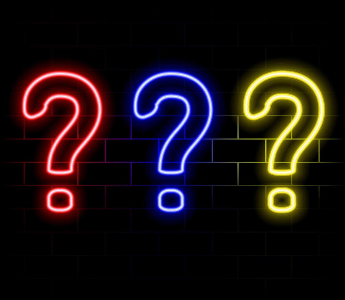 Outline 3 neon questions icon set. Glowing neon question marks, FAQ support, answer searching, questionnaire. Find problem decision. Unknown surprise, secret, mystery. Quest, puzzle and quiz. Pro Vector