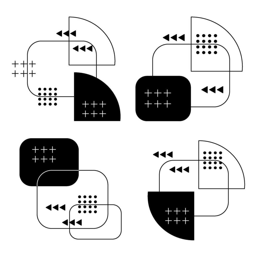 Set memphis geometric shape created from black line semicircles and square. Pro Vector