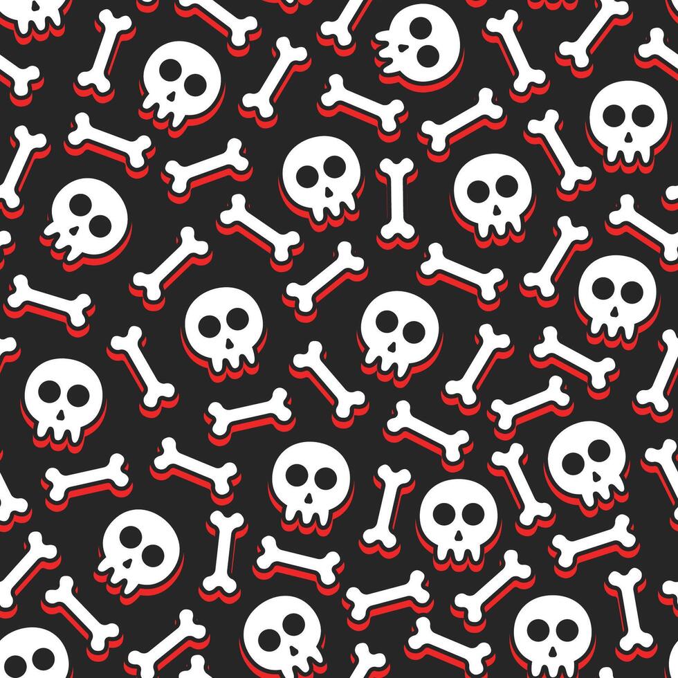 seamless pattern of white skulls and bones with red shadows on an orange background Pro Vector