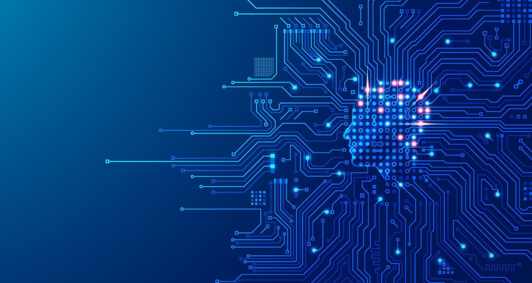 concept of deep learning or machine learning, graphic of artificial intelligence combined with circuit board Pro Vector
