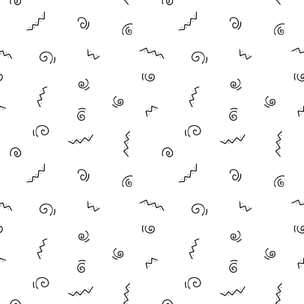 Seamless black and white pattern with abstract simple doodle elements. Dotted curls and zigzags. Vector endless texture Pro Vector