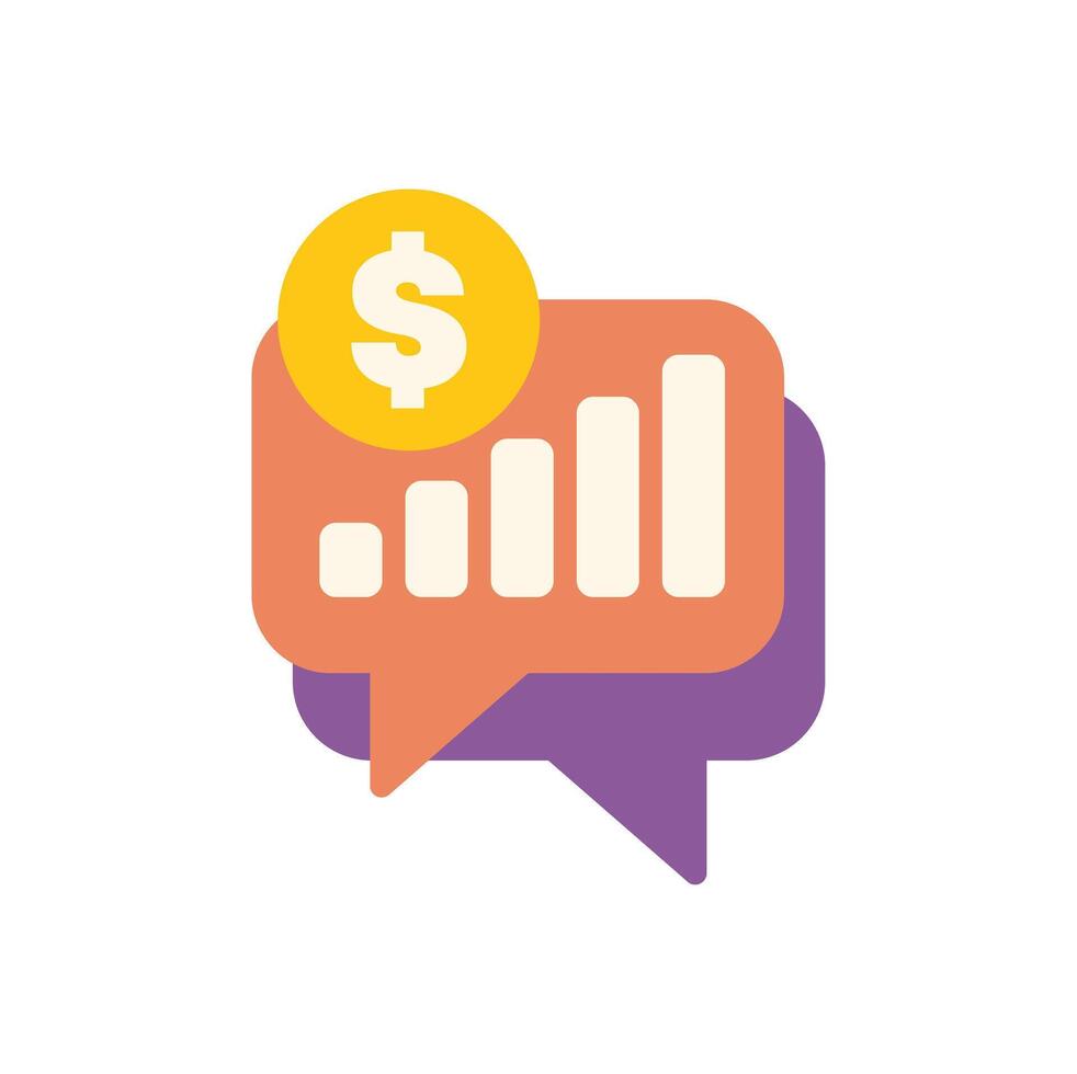 Speech bubble showing increasing bar graph with dollar sign icon Pro Vector