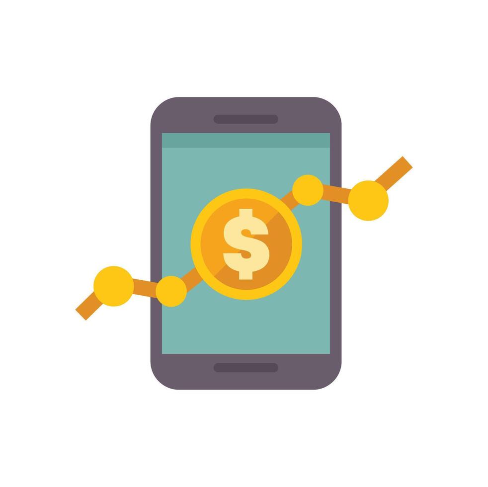 Mobile banking app showing growth with increasing dollar coin value on chart Pro Vector