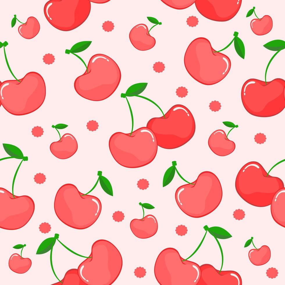 seamless pattern with hand drawn cherry image in flat style Pro Vector